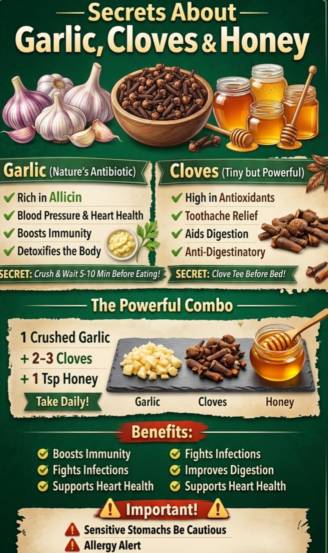 Nature provides powerful tools for daily health. The garlic, cloves, and honey combo is a simple, affordable way to support your immune system, heart, and digestion. Use it wisely and consistently to unlock its benefits.